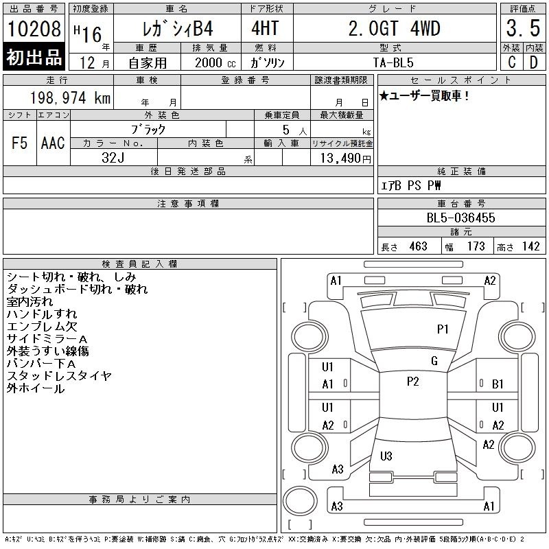 SUBARU LEGACY B4 - лот 10208