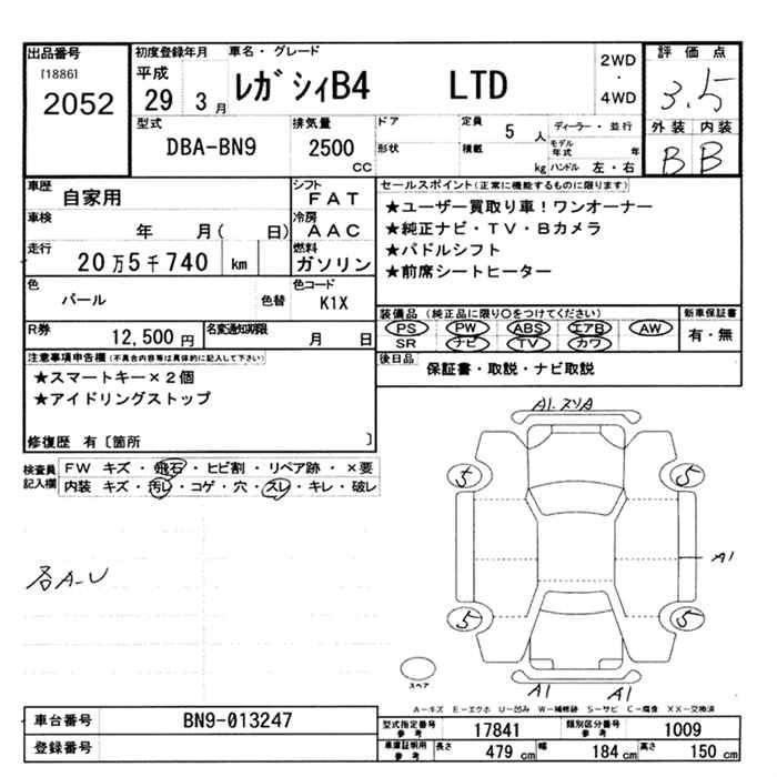 SUBARU LEGACY B4 LTD - лот 2052