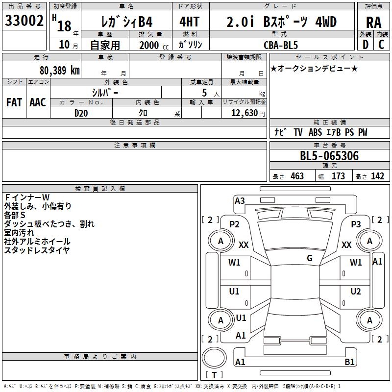 SUBARU LEGACY B4 2.0I B SPORT 4WD - лот 33002