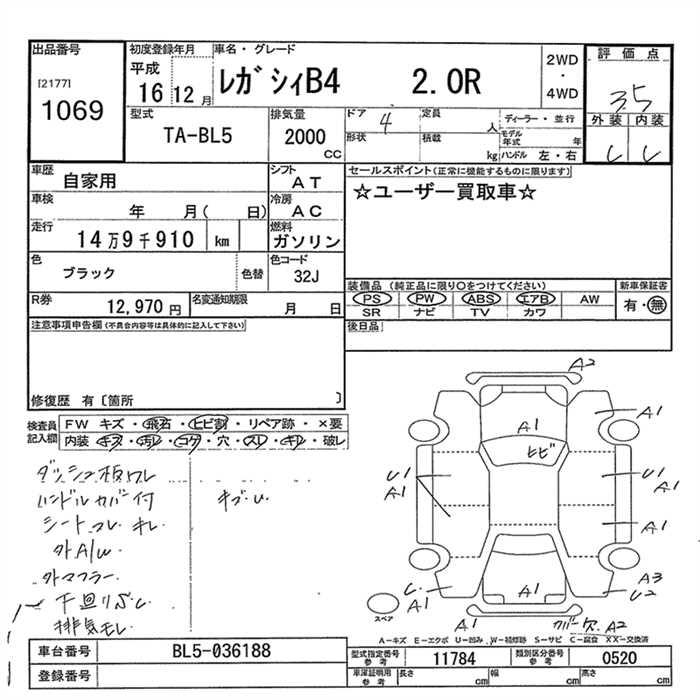 SUBARU LEGACY B4 2.0R - лот 1069
