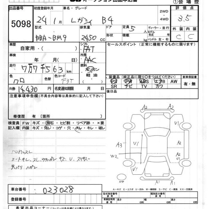 SUBARU LEGACY B4 - лот 5098