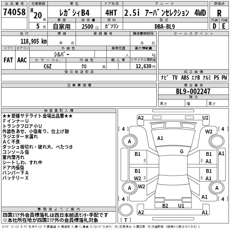 SUBARU LEGACY B4 2.5I URBAN SELECTION 4WD - лот 74058