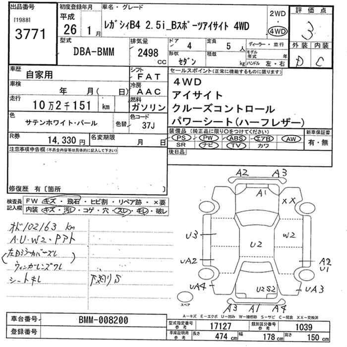 SUBARU LEGACY B4 4WD 2.5i B спорт EyeSight - лот 3771