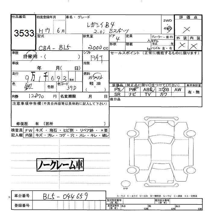 Все аукционы SUBARU LEGACY B4