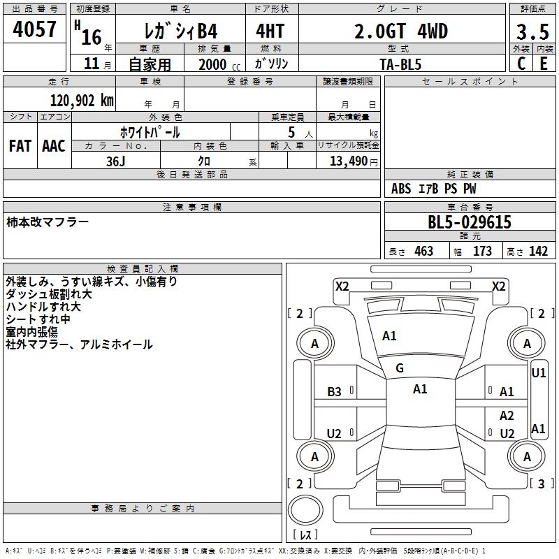SUBARU LEGACY B4 2.0GT 4WD - лот 4057