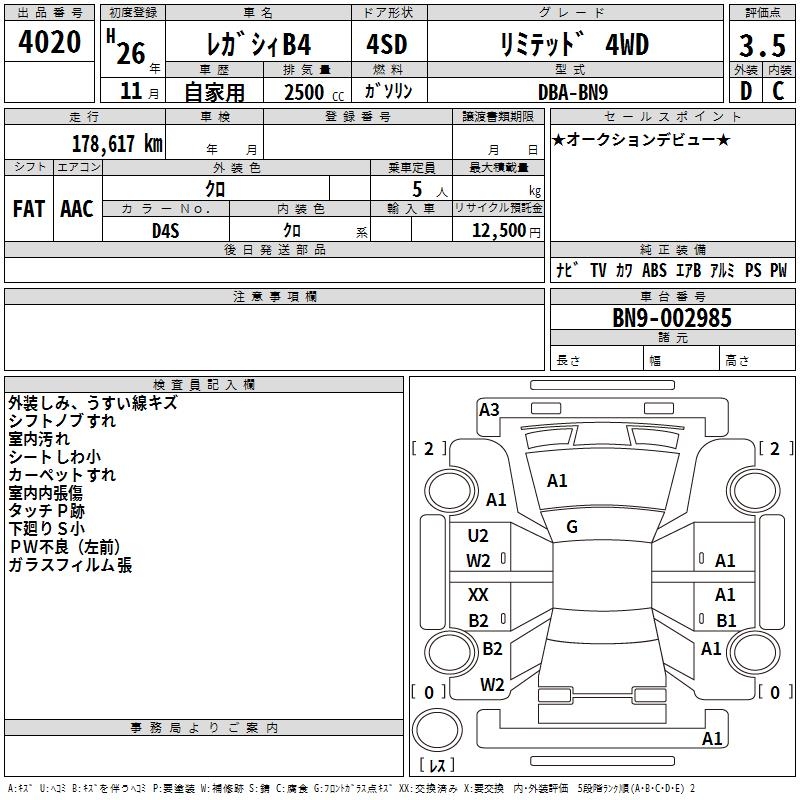 Все аукционы SUBARU LEGACY B4
