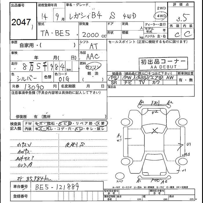 SUBARU LEGACY B4 4WD S - лот 2047