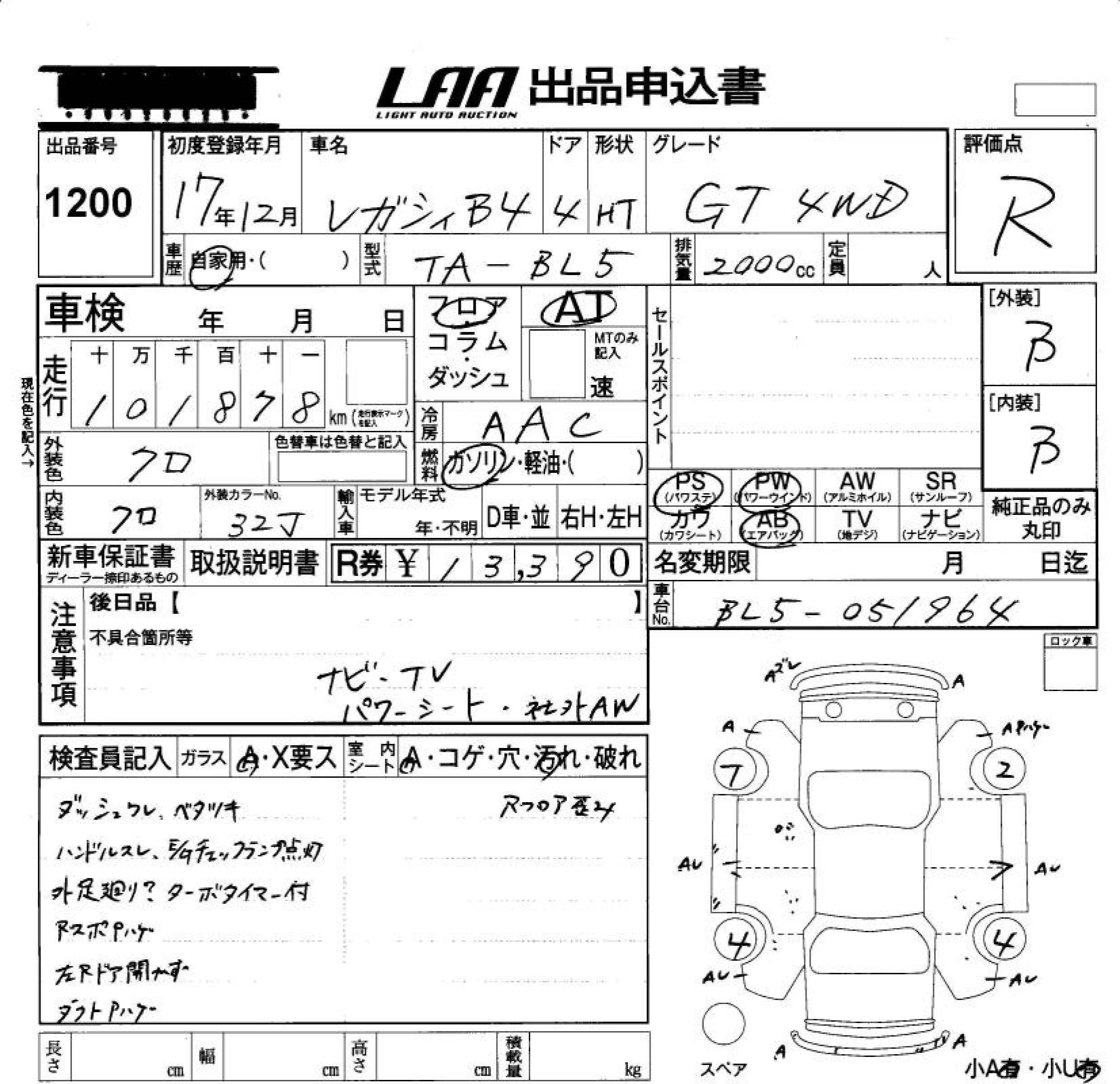 SUBARU LEGACY B4 GT 4WD - лот 1200