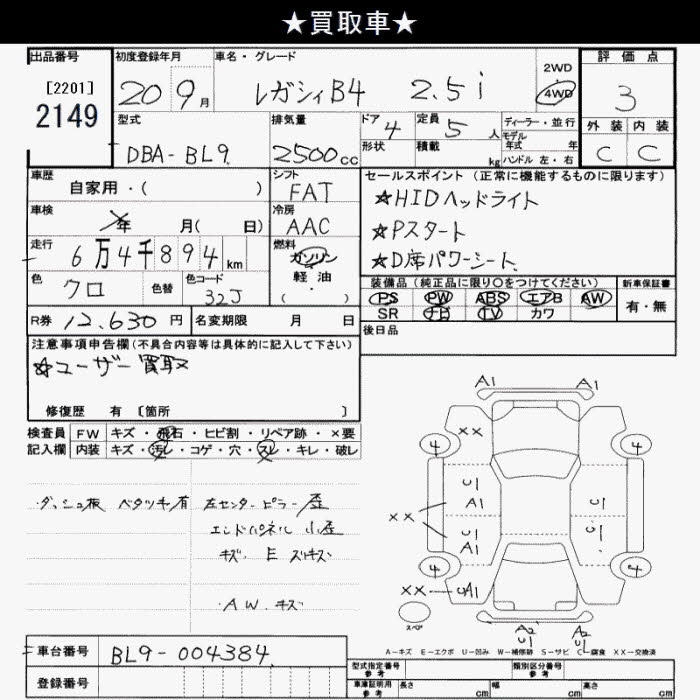 SUBARU LEGACY B4 4WD 2.5i - лот 2149