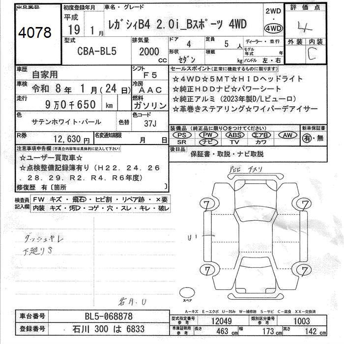 SUBARU LEGACY B4 4WD 2.0I B SPORT - лот 4078