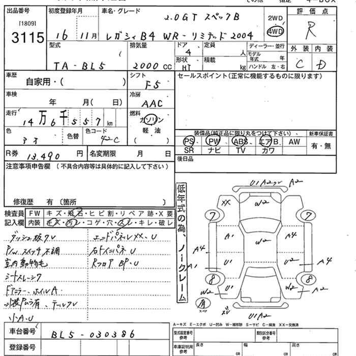 SUBARU LEGACY B4 4WD 2.0GT SPECIFICATIONS.B WR-LTD2004 - лот 3115