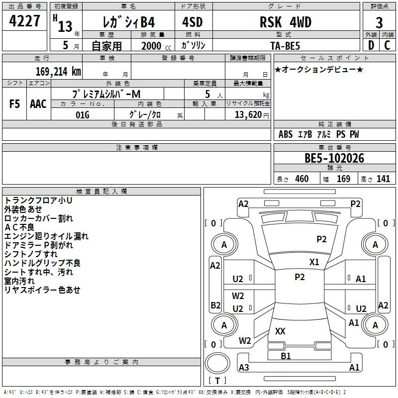 SUBARU LEGACY B4 RSK 4WD - лот 4227