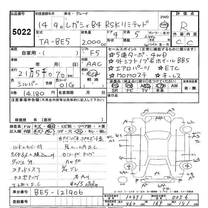 SUBARU LEGACY B4 - лот 5022