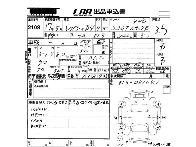 SUBARU LEGACY B4 - лот 2108