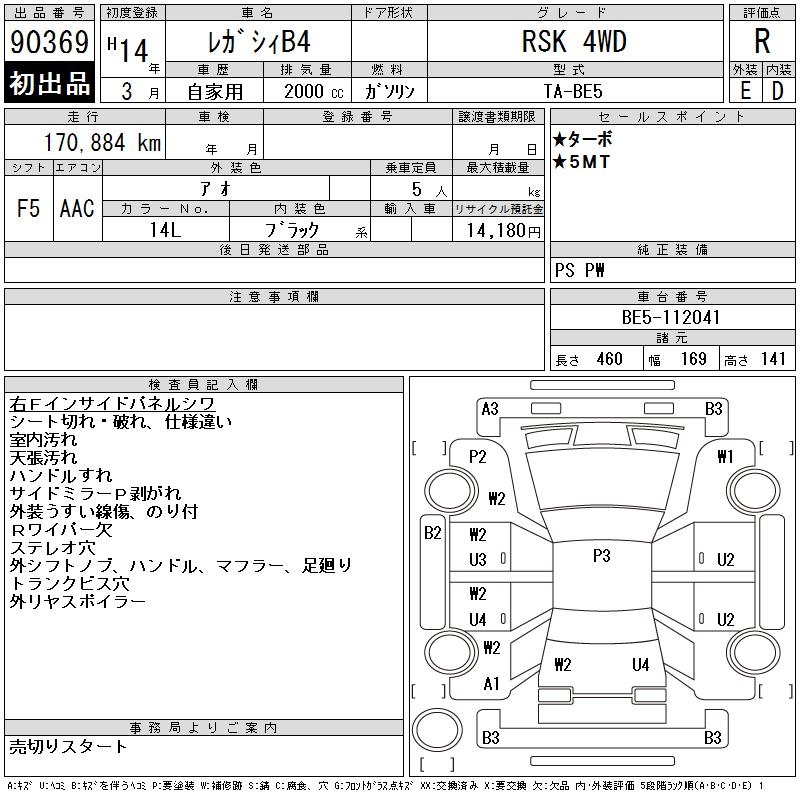 SUBARU LEGACY B4 - лот 90369