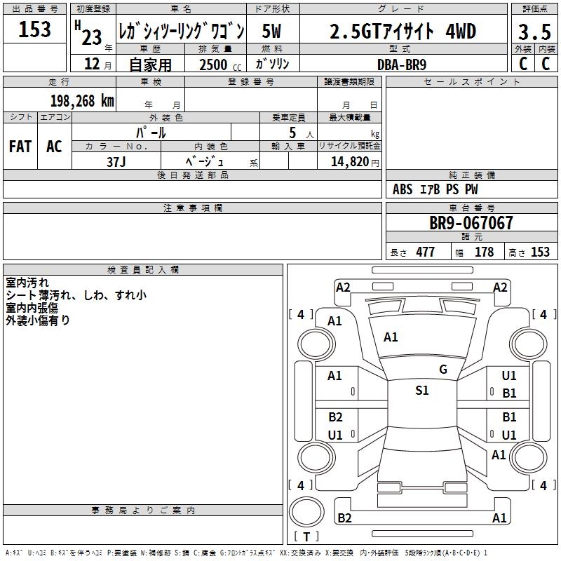SUBARU LEGACY TOURING WAGON 2.5GT EYESIGHT 4WD - лот 153