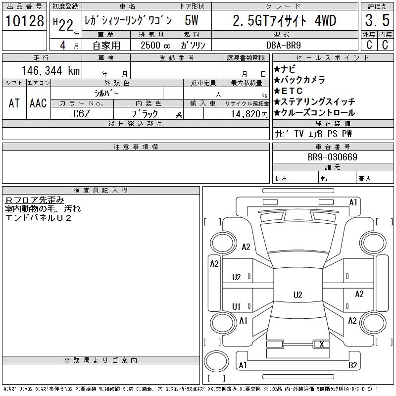 SUBARU LEGACY TOURING WAGON 2.5GT EYESIGHT 4WD - лот 10128