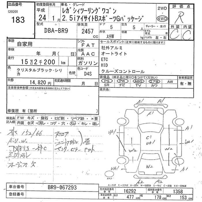 SUBARU LEGACY TOURING WAGON 4WD 2.5I EYESIGHT B SPORT G PACKAGE - лот 183