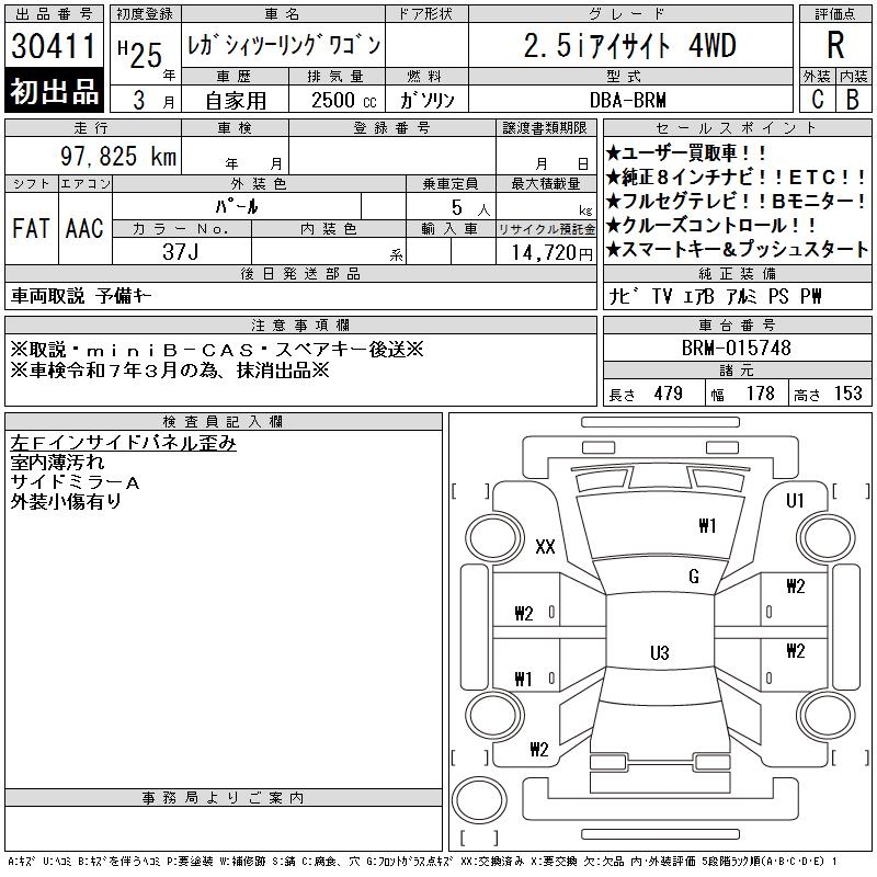 SUBARU LEGACY TOURING WAGON 2.5I EYESIGHT 4WD - лот 30411