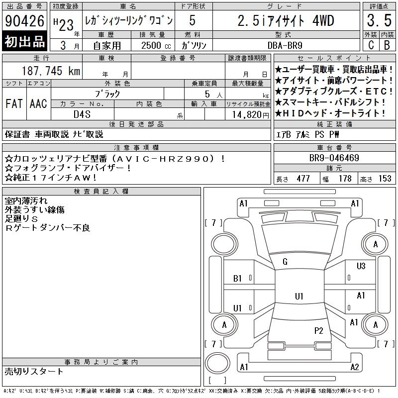 Все аукционы SUBARU LEGACY TOURING WAGON