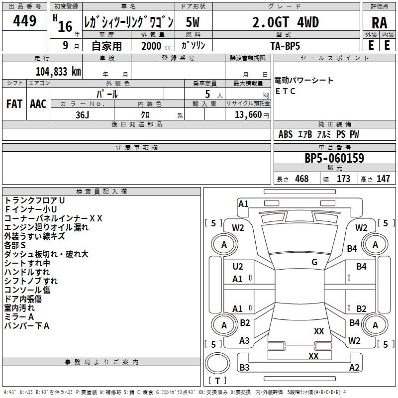 SUBARU LEGACY TOURING WAGON 2.0GT 4WD - лот 449