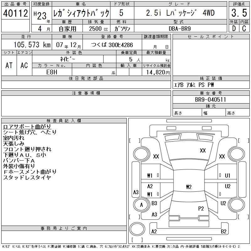 Все аукционы SUBARU LEGACY TOURING WAGON