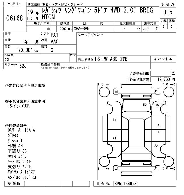 SUBARU LEGACY TOURING WAGON 2.0I BRIGHTON - лот 6168