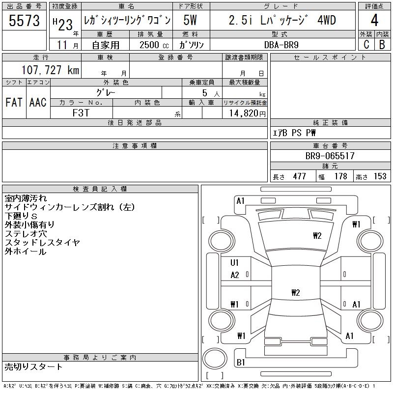 Все аукционы SUBARU LEGACY TOURING WAGON