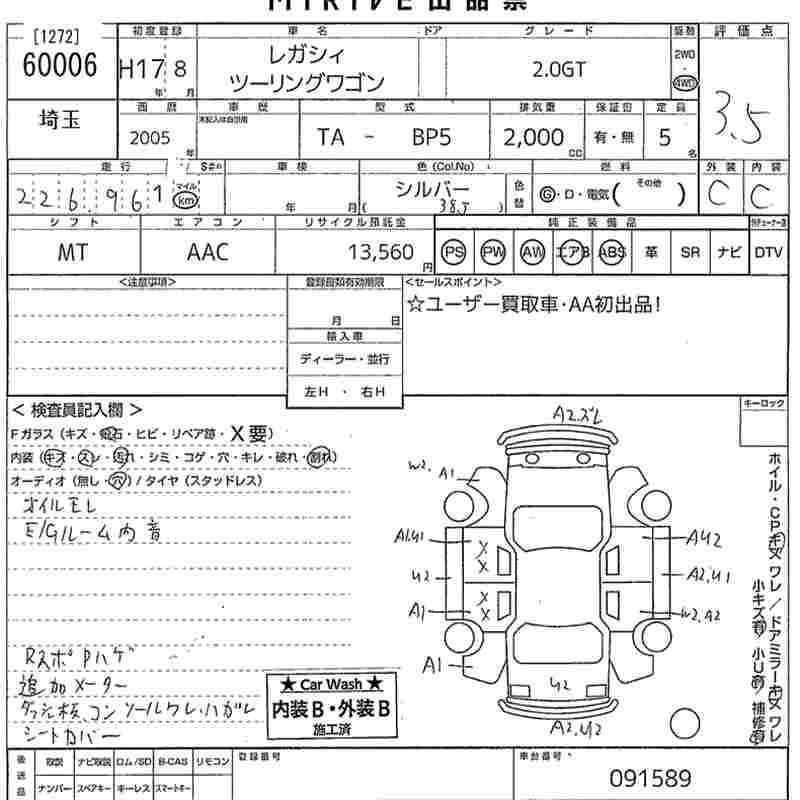 SUBARU LEGACY TOURING WAGON 2.0GT - лот 60006