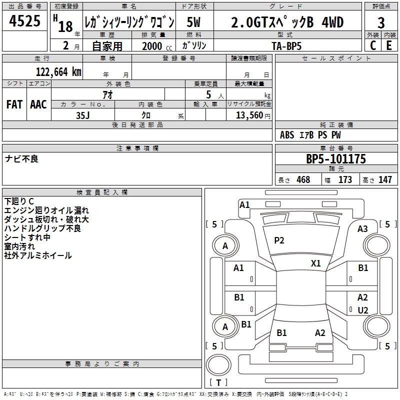 SUBARU LEGACY TOURING WAGON 2.0GT SPECIFICATIONS B 4WD - лот 4525