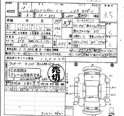 SUBARU LEGACY TOURING WAGON 2.0R B SPORT 4WD - лот 4020