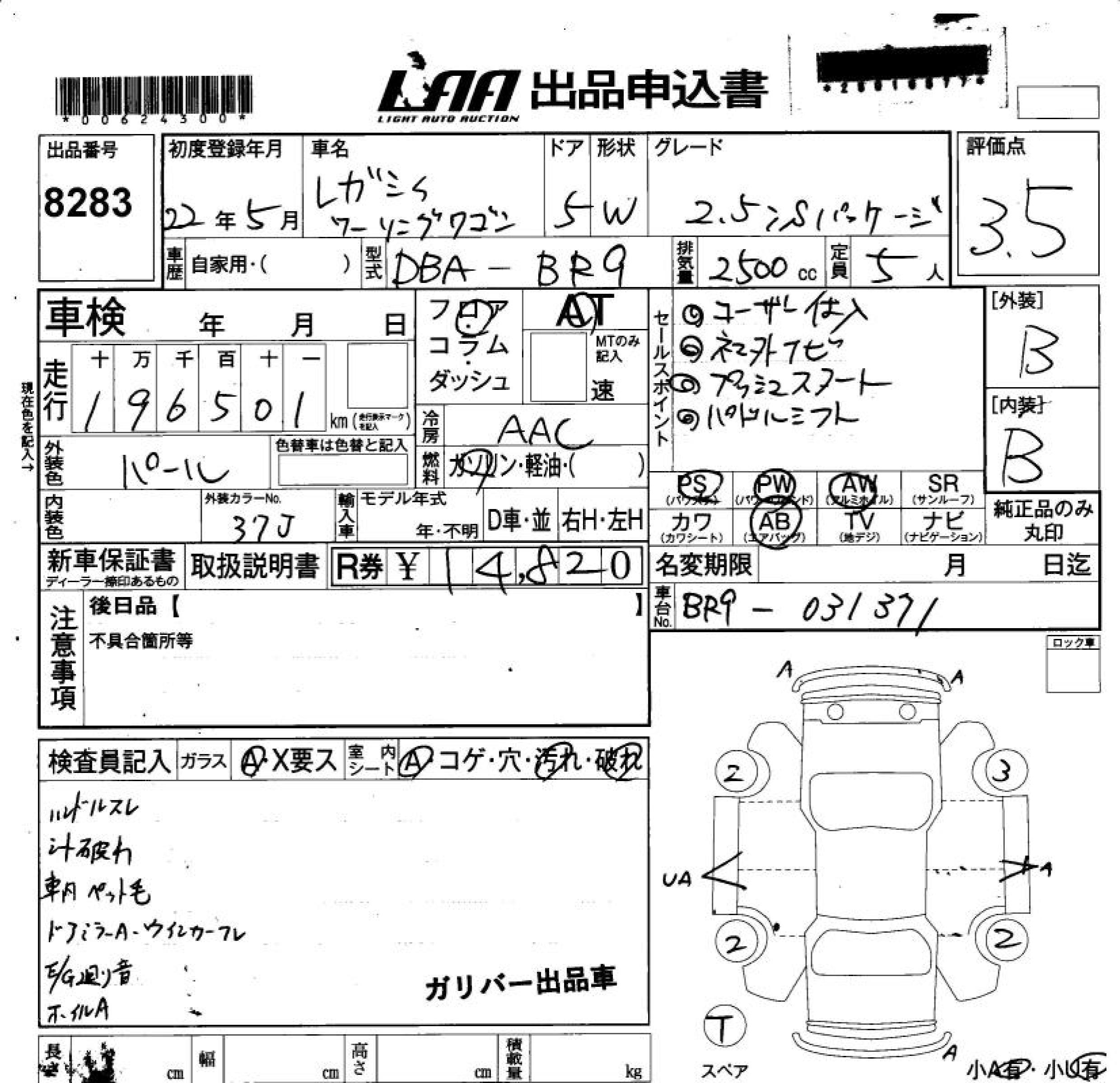 Все аукционы SUBARU LEGACY TOURING WAGON