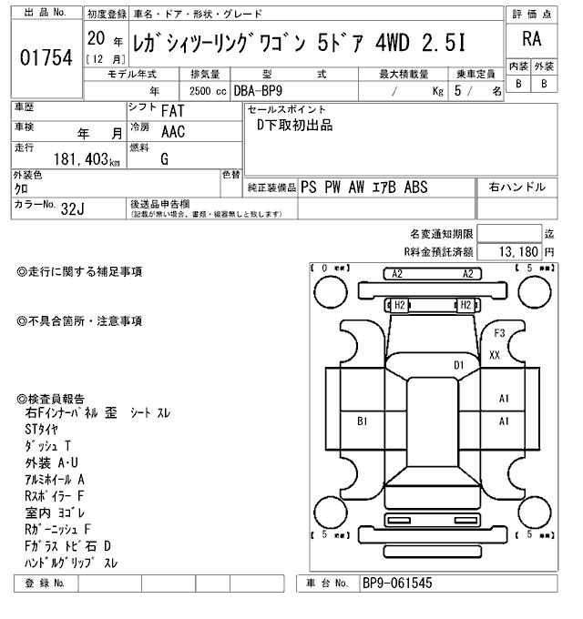 SUBARU LEGACY TOURING WAGON 2.5I - лот 1754