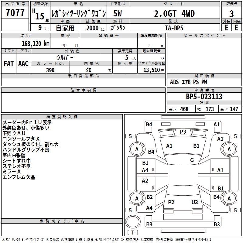 SUBARU LEGACY TOURING WAGON 2.0GT 4WD - лот 7077