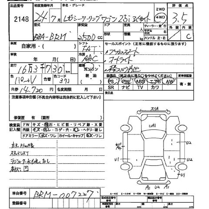 Все аукционы SUBARU LEGACY TOURING WAGON