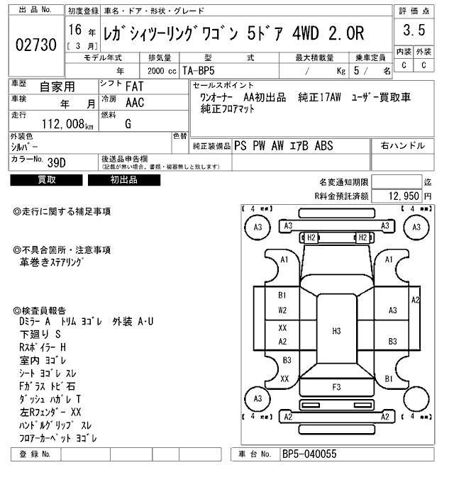 Все аукционы SUBARU LEGACY TOURING WAGON