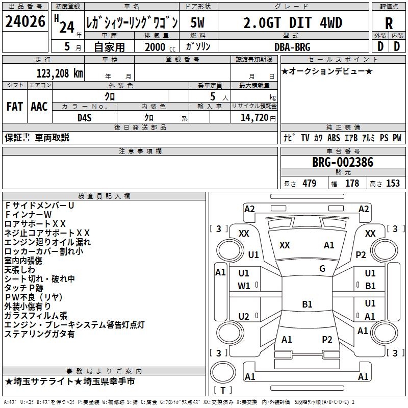 SUBARU LEGACY TOURING WAGON 2.0GT DIT 4WD - лот 24026