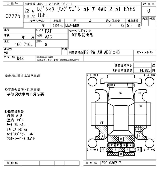 SUBARU LEGACY TOURING WAGON 2.5I EYESIGHT - лот 2225