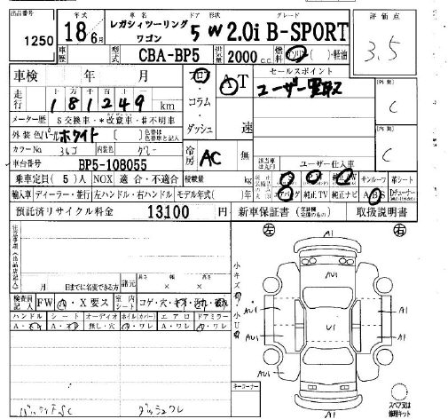 SUBARU LEGACY TOURING WAGON 2.0I B-SPORT - лот 1250