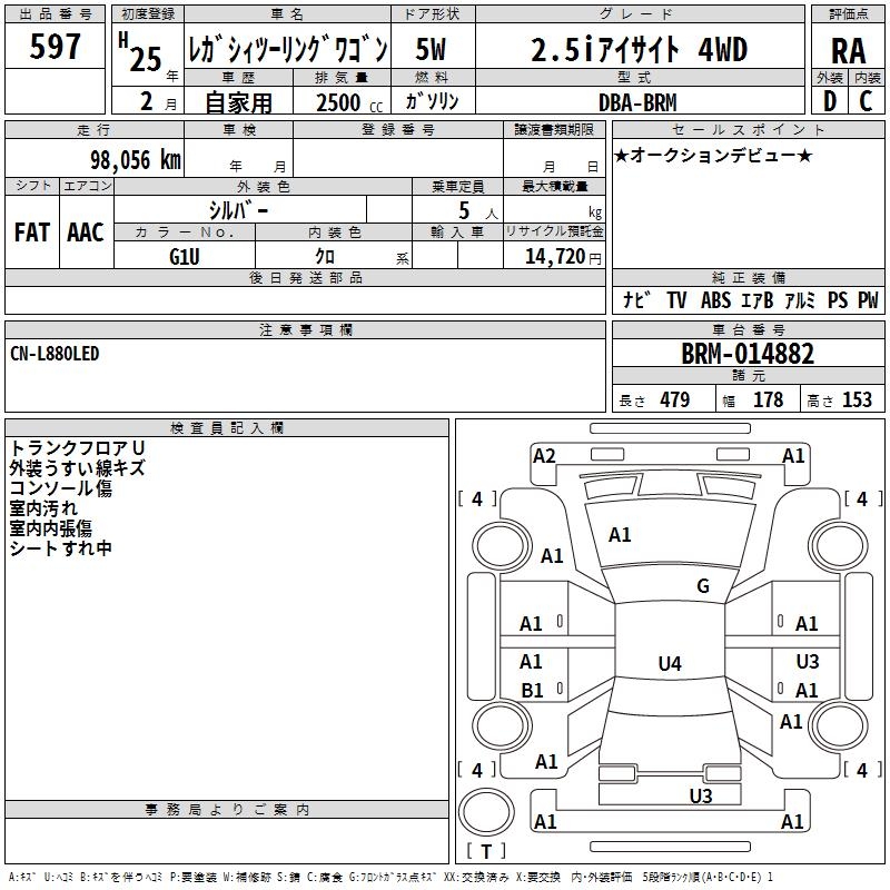 SUBARU LEGACY TOURING WAGON 2.5I EYESIGHT 4WD - лот 597