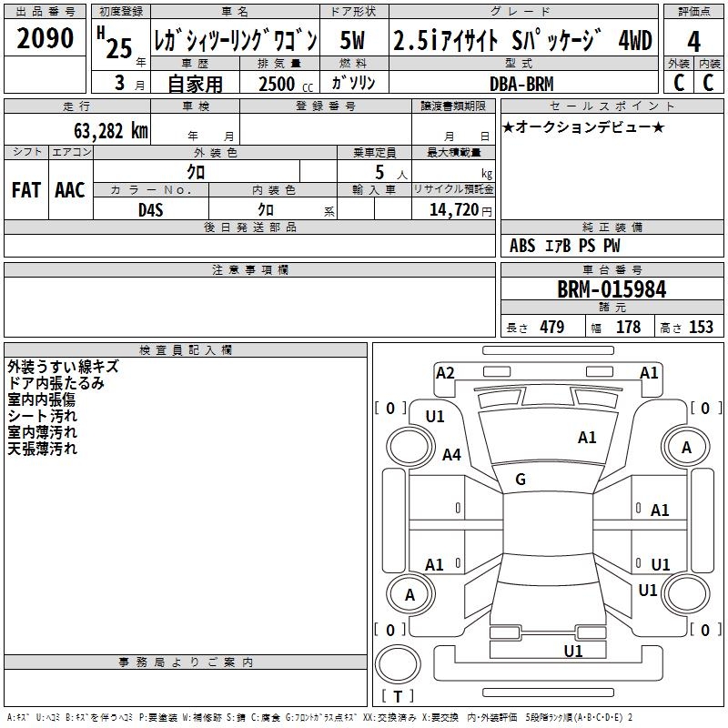 SUBARU LEGACY TOURING WAGON 2.5I EYESIGHT S PACK 4WD - лот 2090