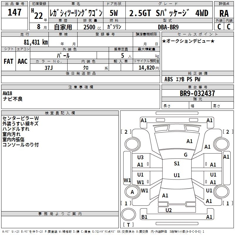 SUBARU LEGACY TOURING WAGON 2.5GT S PACKAGE 4WD - лот 147