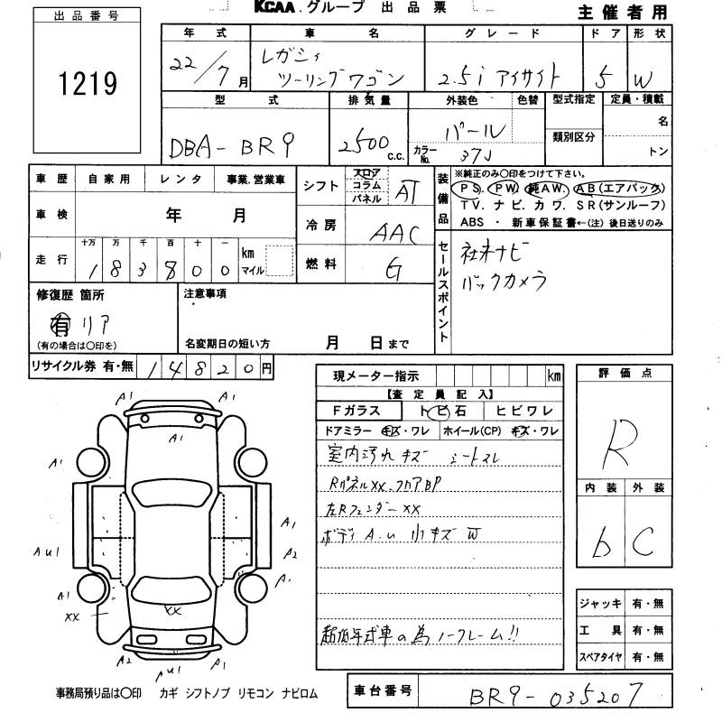 Все аукционы SUBARU LEGACY TOURING WAGON