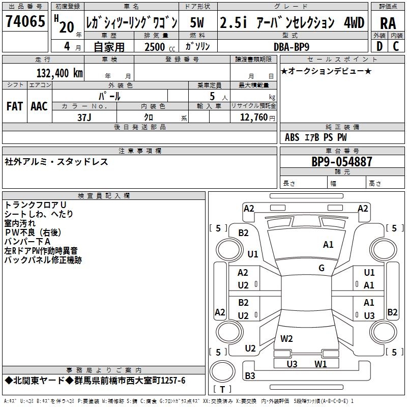 SUBARU LEGACY TOURING WAGON 2.5I URBAN SELECTION 4WD - лот 74065