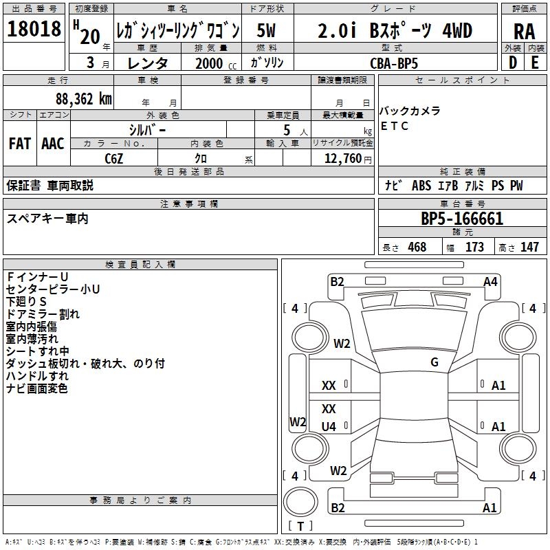 SUBARU LEGACY TOURING WAGON 2.0I B SPORT 4WD - лот 18018