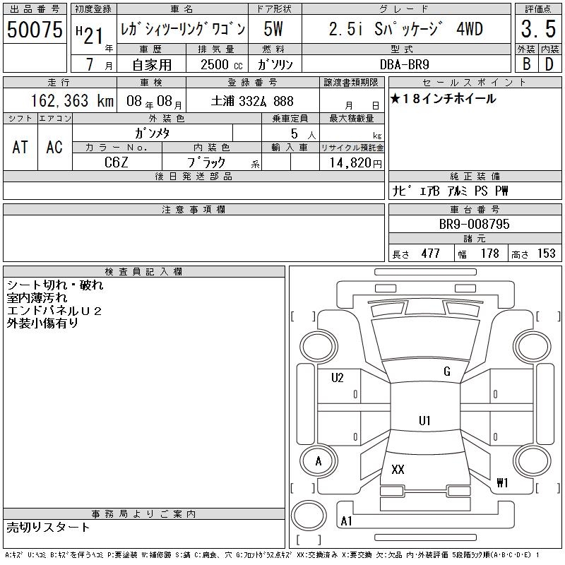 Все аукционы SUBARU LEGACY TOURING WAGON