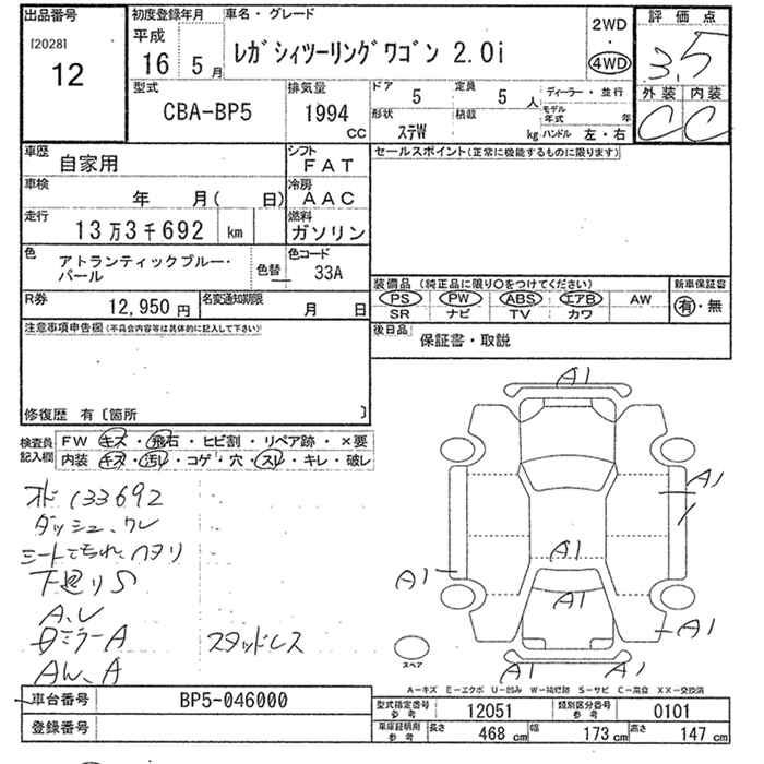 Все аукционы SUBARU LEGACY TOURING WAGON