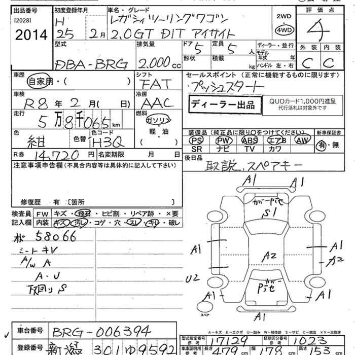 SUBARU LEGACY TOURING WAGON 4WD 2.0GT DIT EYESIGHT - лот 2014