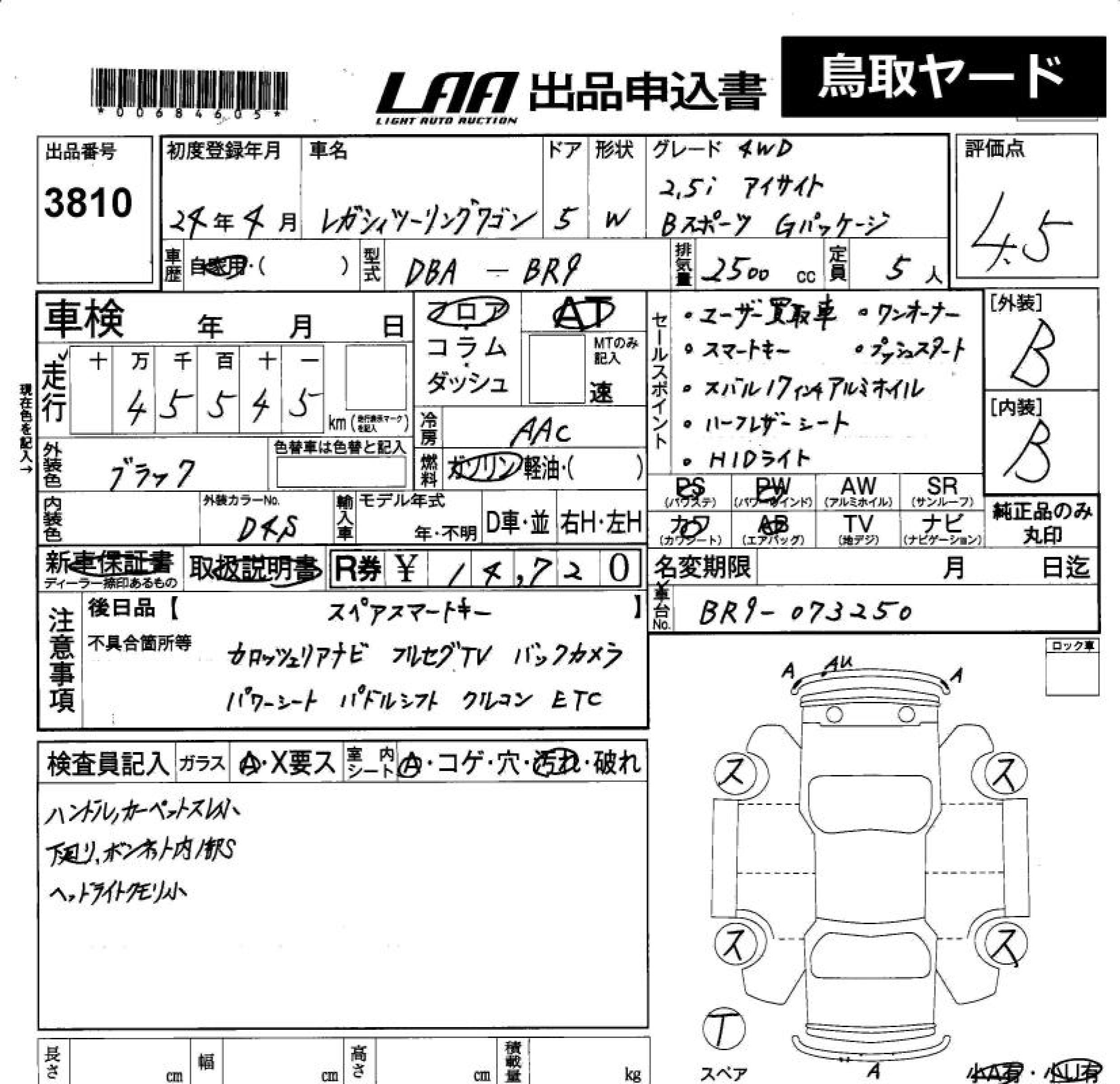 SUBARU LEGACY TOURING WAGON 2.5I EYESIGHT B SPORT - лот 3810