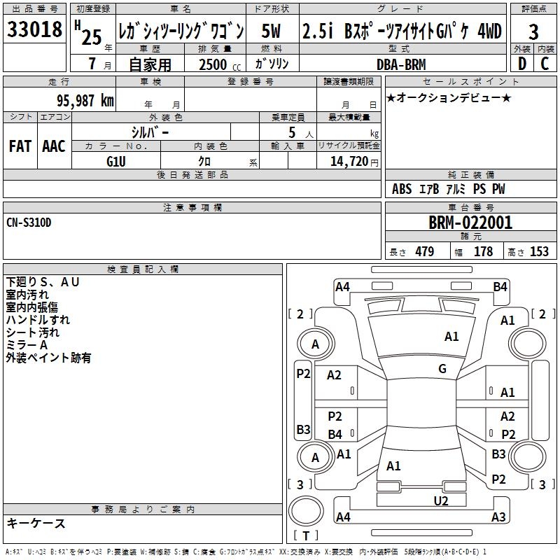 SUBARU LEGACY TOURING WAGON 2.5I B SPORT EYESIGHT 4WD - лот 33018